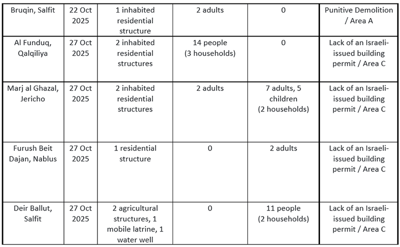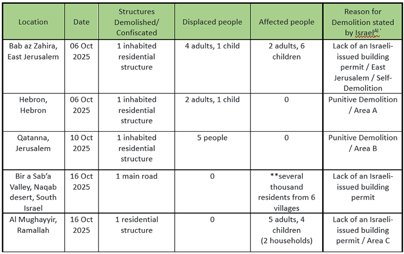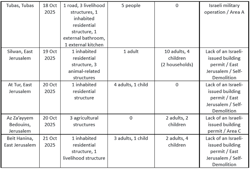 4. Undefined demolitions: These include mainly demolitions resulting from land-clearing operations and removal of Palestinian populations.